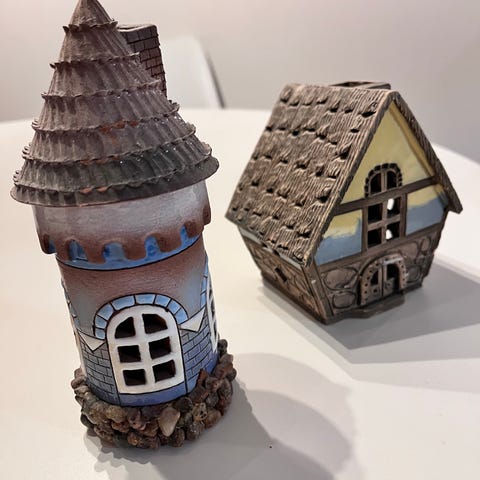Tummansininen Det Gamle Apotek talolyhty. Korkeus n. 23cm, leveys n. 8cm ja syvyys n. 6cm