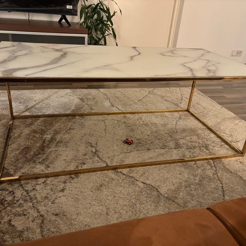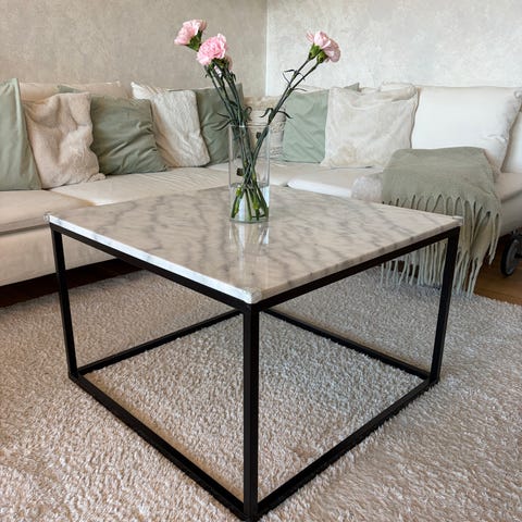 Upea aito marmorinen sohvapöytä, täysin virheetön, erittäin tukeva messinkijalka. Ollut käytössä noin kaksi viikkoa. Ovh. Kodin1 noin 470€