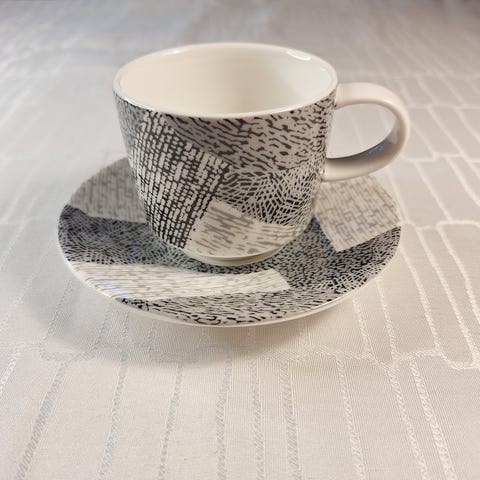 Siistit Pentik Geo sarjan espressokupit aluslautasella. Kuppien mitat 4,5 x 6cm, tilavuus n. 6cm. Lautasten halkaisija 11cm. Kunto virheetön. Myydään mielellään yhdessä = 10e. Nouto tai postitus.