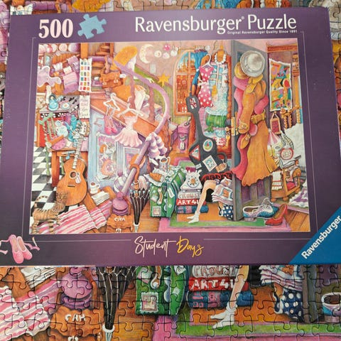 Kaksi 1000 palan palapeliä, yksi 1500 palan palapeli ja yksi 500 palan palapeli.