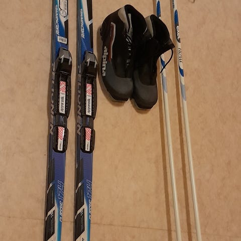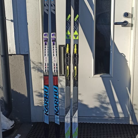 Perinteisen sukset karvapohjalla. 187 cm. Monot koko 38. Todella hyväkuntoiset.