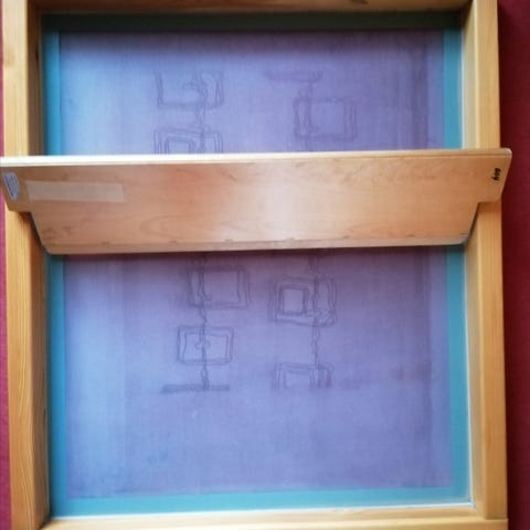Käyttämätön kankaanpainoseula ja raakeli.
