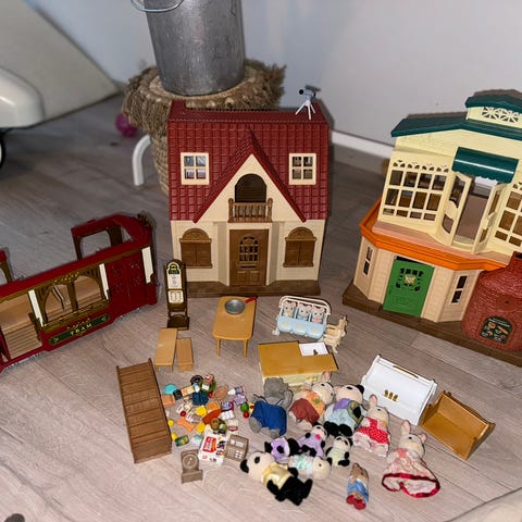 Sylvanian talot, huvipuisto, auto, huonekalut, hahmot ja huonekalut. Kaikki yhteensä 100e. Vain nouto.