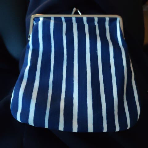 Marimekko kangaslompakko naisille. Materiaalina kangas, jossa punasävyinen kuosi aalloilla ja pilkuilla. Lompakossa on metallinen kehyslukko yläreunassa ja kaksi etutaskua nepparikiinnityksellä. Soveltuu käteisen, korttien ja pienten tavaroiden säilytykseen arjessa.