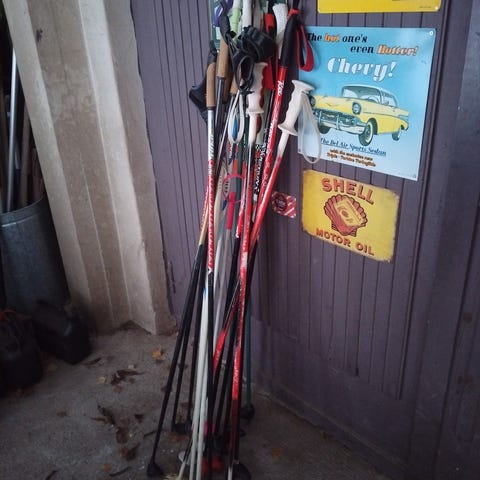 Hyvässä kunnossa olevat sauvat. Muuten tosi siistit, mutta edellisten käyttäjien nimet peitetty mustalla tussilla.