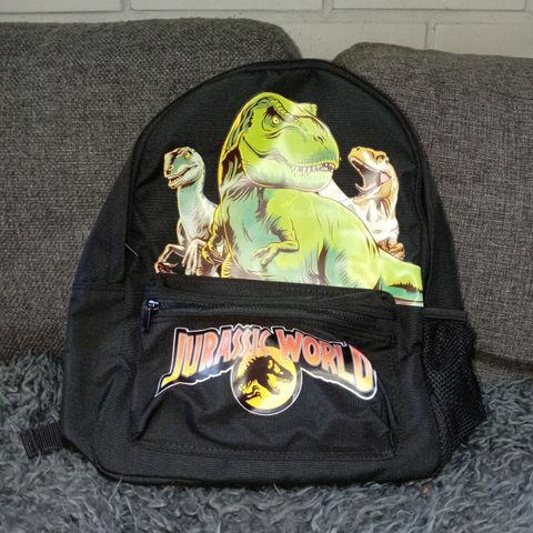 Myydään muutaman kerran käytetty lasten reppu, Jurassic World aiheinen.