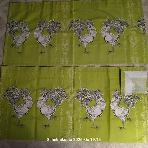 Myydään Vallilan limen vihreä Kukko kiekuu valmis verho.