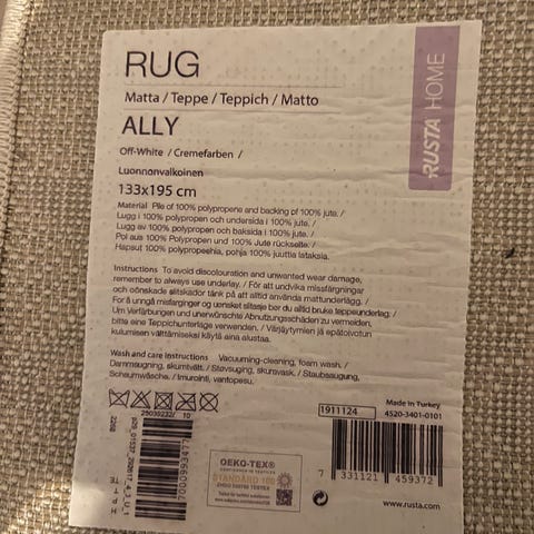 Ylimääräiseksi vain pari vkoa lattialla ollut ihana pöllömatto. 133x190cm. Omaan kotiin koko väärä.