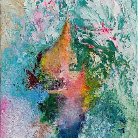 ”Catnap” maalaus 40 x 40 cm abstrakti