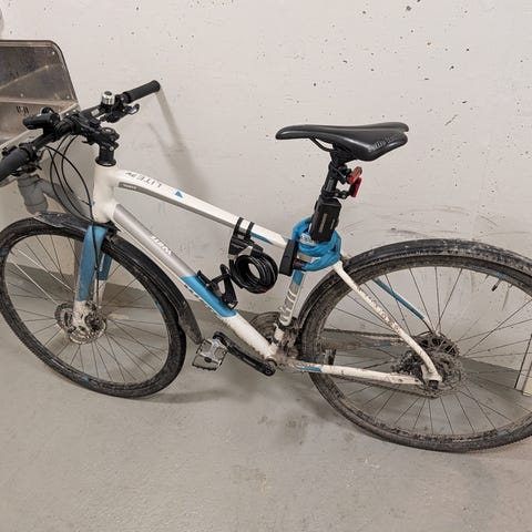 White trainer 27,5-tuuma. Pyörän värit ovat tumman sininen ja punainen. Pyörässä on kaikki kunnossa. Jarru- tai jousivikaa ei ole, eli valmis ajoon, vaikka heti.