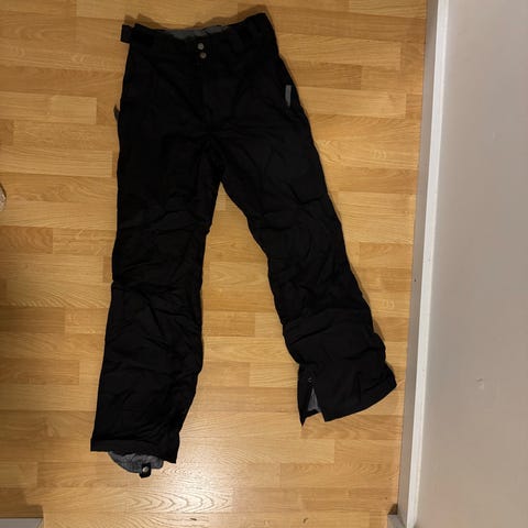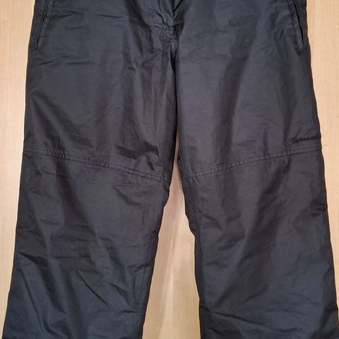 Väri musta, koko S / 36. Ehjät, puhtaat, lautailuun ja lasketteluun soveltuvat. Ohut vanutäyte. Pakkassäälle sopivat. Henkselit saa irti. Vyötäröllä velcrosäätö. Merkki Pulp, ostettu Sveitsistä noin 10 v sitten, käytetty parilla viikon laskettelulomalla. Kunnossa ei huomautettavaa. Nouto Kampin seudulta.