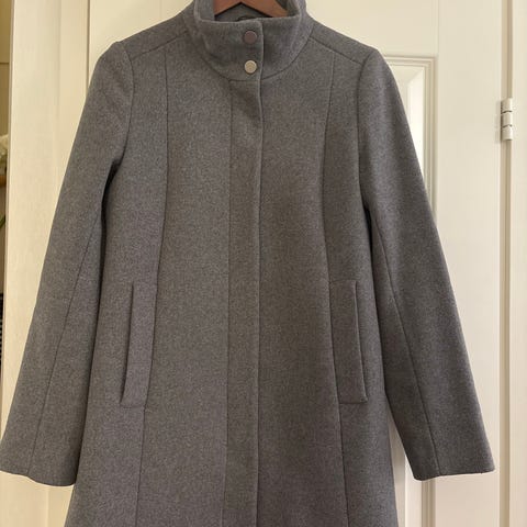 Lindexin Holly & Whyte tummansininen villakangastakki koossa S. Edessä viistot taskut, takana halkio helmassa.