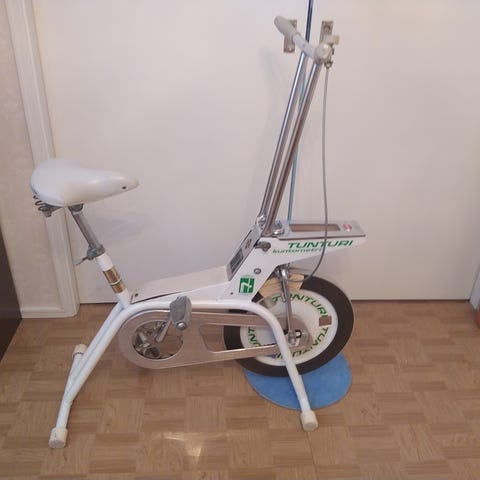 Karhu iCycle BT kuntopyörä kotikäyttöön. Laitteessa on säädettävä satula ja polkimet hihnoilla sekä etuosassa näyttö harjoittelutietojen seuraamiseen. Soveltuu sisätiloissa tehtävään kuntoharjoitteluun ja peruskunnon ylläpitoon.
