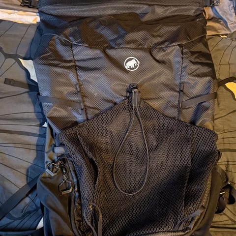 Mammut ducan spine 50-60l rinkka. Ostettu 2022 ja käytetty aktiivisesti, mutta kunnoltaan on aivan uudenveroinen. Tässä rinkassa on panostettu kantamisen mukavuuteen ja on silti varsin kevyt. Hp. 100e. Mukaan exped verkkopussi rinkan eteen.
