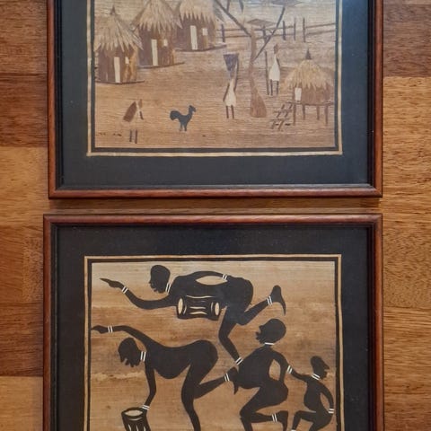 Afrikan matkalta ostetut maalaukset kehystettynä yhteishintaan 50e. Leveys 79cm ja korkeus 55cm.