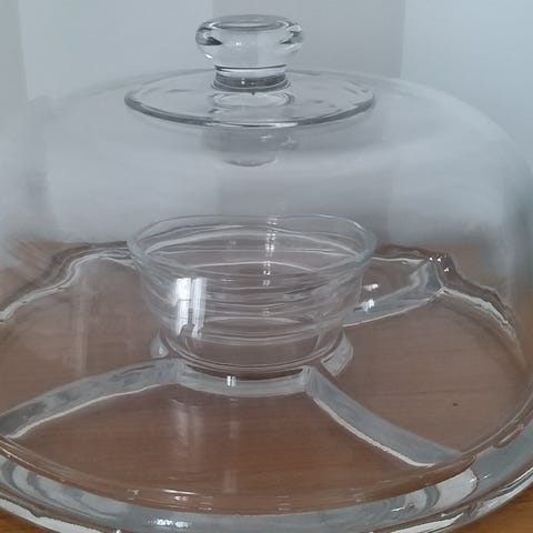 Tämä lasivati edustaa klassista tyyliä, jossa yhdistyvät koristeellisuus ja käytännöllisyys. Se sopii hyvin esillepanoon tai tarjoiluun.