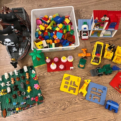 Iso Lego Duplo rakennuspalikkasetti + legolaatikko