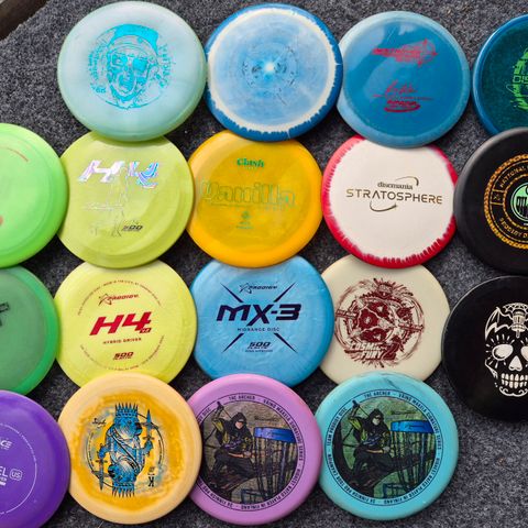 Discraft Archer 4, Malta ja Titanium Buzzz frisbeegolfkiekot. Kuvassa kolme erilaista kiekkoa: vaalea Archer 4 -kiekko kuvioinnilla, vaaleanvihreä Malta-kiekko punaisella painatuksella sekä tummempi Titanium Buzzz -kiekko vihreällä painatuksella. Sopivat frisbeegolfiin eri heittoihin, kuten lähestymisiin ja draiveihin, pelaajan taitotasosta riippuen.