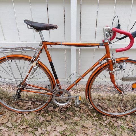 Uusia osia sisä ja ulkorenkaat ( Ulkorenkaat Continental ), ketju, vaihde ja jarruvaijerit, jarrupalat, tankonauha joka on new old stoc eli alkuperäinen -80 luvulta ja kaikki laakerikuulat mitä pyörässä on polkimien laakerikuulia myöden.