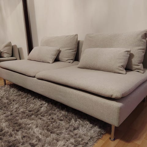 Myydään harmaa IKEA SÖDERHAMN -kolmen istuttava sohva.