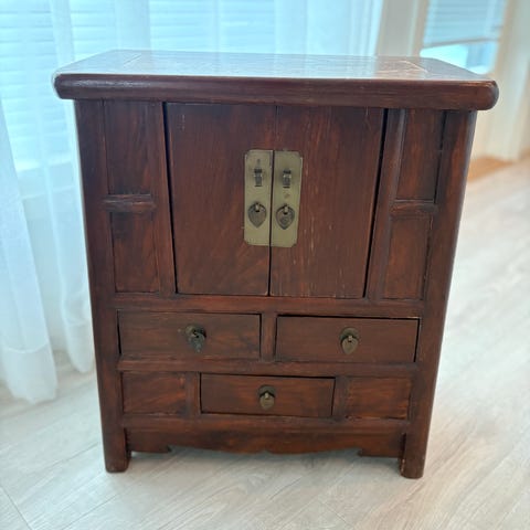 Yöpöytinä toimineet seinään kiinnitettävät kaapit, tummilla ovilla. Kaappeihin kiinnitetty ponnahdussalvat. Toiseen kaappiin kiinnitetty Ikean langaton laturi. Kaapeissa on jonkin verran kulumaa.