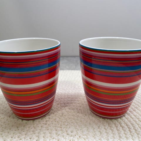Kaksi korvatonta Origo-mukia värissä beige. Löytyy myös kaksi vastaavaa punaista. Laita viestiä, jos haluat ostaa 4 kpl yhteishintaan 30€.