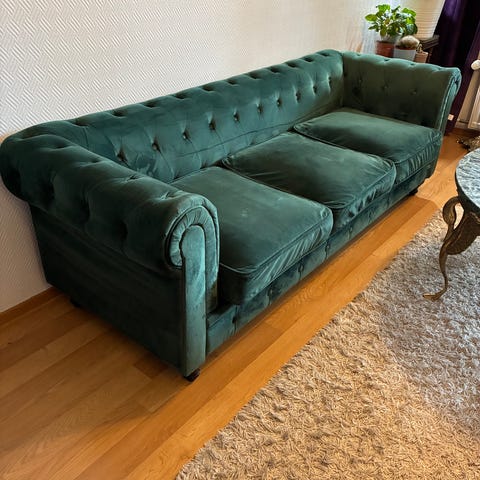 Sohvalla on ikää ja yhtä istuin kohtaa kunnostettu alhaalta, tämä ei kuitenkaan ole sohvan käyttöä haitannut.