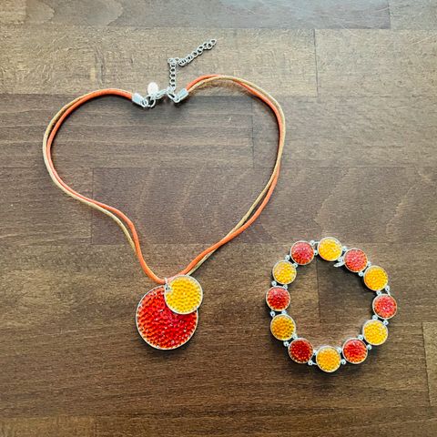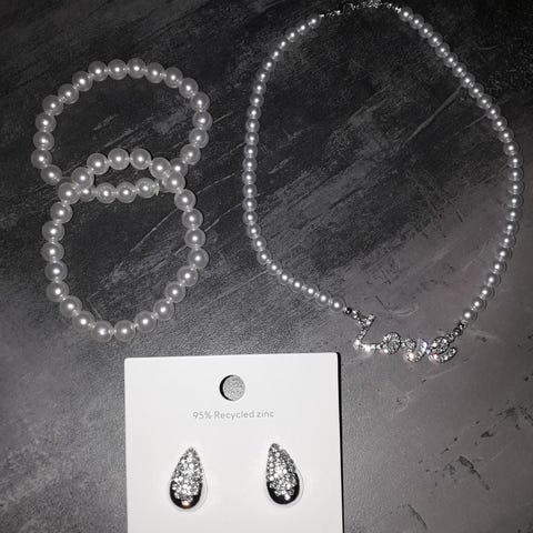 Hyväkuntoinen kaula-ja rannekoru. Hopeanvärinen. Vain nouto.