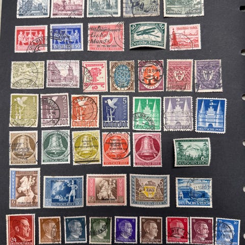 Iso määrä DDR:n merkkejä. Kahdessa ensimmäisessä kuvassa eri merkit. Merkeissä on varmaan joitain samanlaisiakin, mutta ei isoja määriä.. Liimakkeita on ollut osassa. On leimattuja sekä käyttämättömiä. Mukana kolme pienoisarkkia.