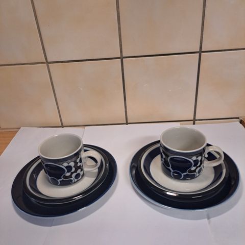 2 kappaletta Arabian Saara-sarjan kahvikuppeja ja tasseja. Erittäin hyvässä kunnossa.