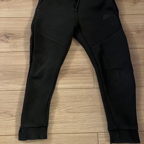 Nike Tech Fleece mustat housut. 147-158 cm. Kunto hyvä. Pieni reikä vyötärönauhan alla, joka näkyy 1. kuvassa. Vain nouto.