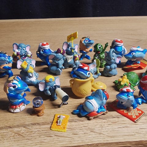 Setti erilaisia Kinder yllätyksistä ja muista pääsiäismunista tulleita leluja. Siistit ja ehjät. Pientä maalikulumaa voi osassa olla.