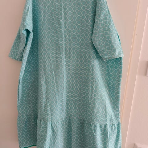 Vuosia sitten jenkeistä ostettu kesämekko, jäänyt käyttämättä. Kokomerkintä vähän outo, mutta heittäisin että noin xxl, kai-kai mitta noin. 70cm. 100% puuvillaa, kapeat olkaimet. Lähetys toridiilinä.