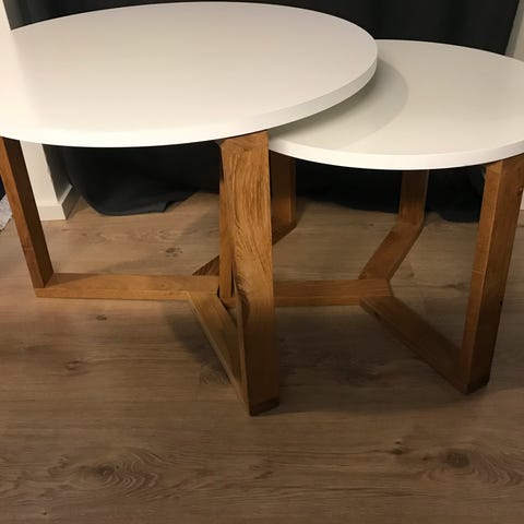 Huom. Hinta laskettu 100–>60€. Valkoinen kiiltävä pintainen sohvapöytä