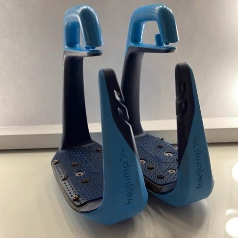 Freejump Soft’Up Pro jalustimet ratsastukseen. Väri musta. Jalustimissa leveä, pitävä jalustinkumi, jossa metallinastat paremman pidon takaamiseksi. Jalustimet on valmistettu kevyestä, kestävästä materiaalista ja niissä on yksipuolinen kiinnitys jalustinhihnaan. Soveltuvat yleis- ja esteratsastukseen.