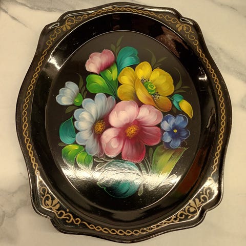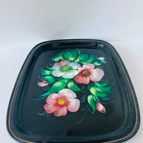 tarjotin tarjottimet vati vadit tarjoiluun alunen vati sisustustavarat, sisustus, seinäkoriste koriste USSR vintage russian folk art kansantaide Koristemaalattu Russia Vintage Neuvostoliitto Venäläinen Venäläisiä koriste koriste-esineet koristetaulu koti kukallinen kukalliset kukat kukikas kukka kukkakimppu kukkakuosi kukkakuvio kukkakuvioinen kukkanen kukkia kuosi kuosilla kuvio kuvioilla kuvioinen kuviointi kuviolla kuviollinen luku lukua luvulta mummo mummolan nostalginen retro retroa retrokuosi ruusu ruusuja ruusukuosi ruusukuvio ruusukuvioinen ruusukuviollinen ruusullinen ruusulliset ruusut sisustaminen sisustukseen sisustus sisustusesineet sisustustaulu somiste