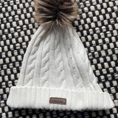 Newbien beigen sävyinen 100% puuvilla neuleviltti, joka päissä tupsut. Koko n. 85cmx85cm. Vaunuissa käytetty satunnaisesti.