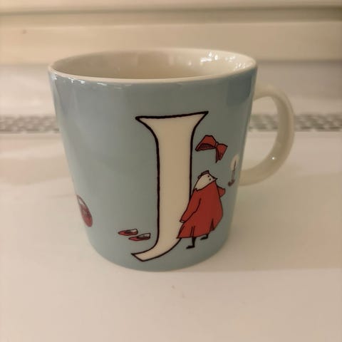 Vaaleanpunainen muumimuki S-kirjaimella. Uusi ja käyttämätön.