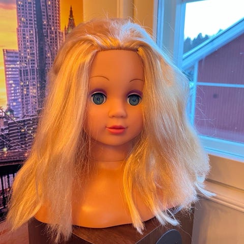 Kampaus harjoitusnukke.Malli johonkin voi tehdä kampaus, meikata ym.