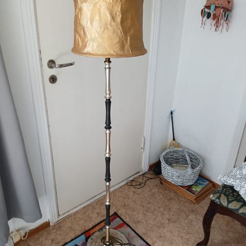 Ruskea pallo-valaisin. Toimii, uudet pistokokeet (molempiin palloihin omansa). Käytön jälkiä löytyy, tukeva jalusta.
