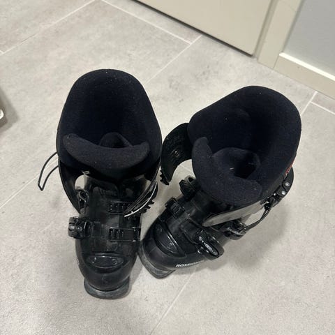 Lange lasten laskettelumonot, koko 19–19,5. Väri sininen, musta sisävuori. Lämpöiset käyttää. Hyvät vielä seuraavalle. Nouto Kouvola Mielakka.