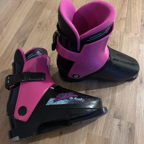 Lasten laskettelumonot. Monon kyljessä merkinnät 247mm ja koko 20-20.5. vastaa suunnilleen kengänkokoa 33