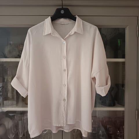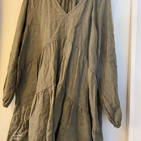 Kiva Bypias Bohemiana pellavatunika, one size. Kai-kai n 65 cm ja olka-helma n 76 cm, takaa pidempi. Vanharoosa väri paikoitellen hieman epätasainen. Ohuehkoa kesäpellavaa.