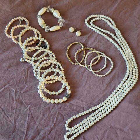 Helmikorusetti jossa kaulakoru, rannekoru ja korvikset. Kaulakorussa ja rannekorussa magneettikiinnitys.