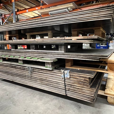 2 m pitkiä paloja 21 mm paksua filmiveneria (199-200 cm), kapeimmat 50 cm, leveimmät 122 cm. Toinen puoli harmaa, toinen ruskea ja molemmat puolet sileitä.