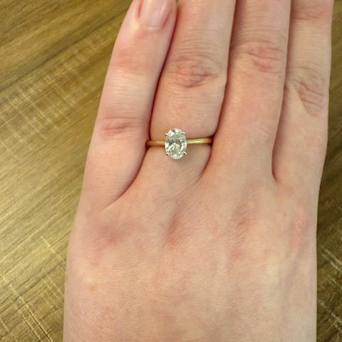 Luonnontimantti 0,80 ct sävyssä M, VS2, 18k keltakultainen flakkarunko. 2025.