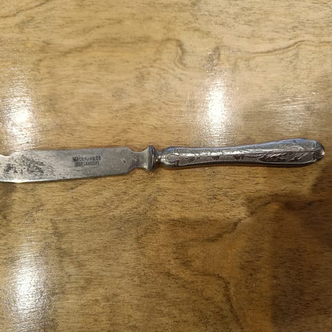 Terässä patinaa ja käytön jälkiä (näkyy kuvissa)