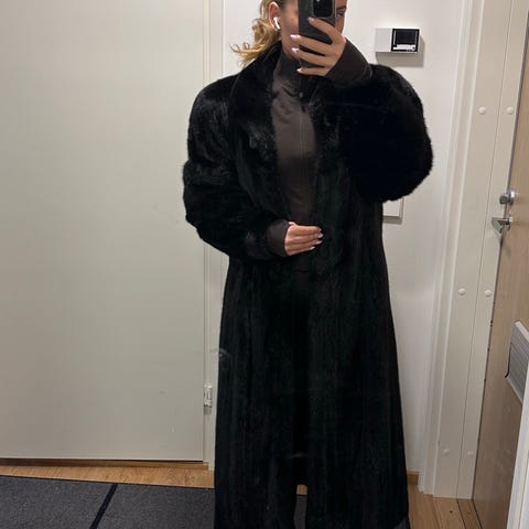 Saga Mink exclusive fashion Chris Design Helsinki Finland täyspitkä minkkiturkki. Nahka notkea ja karva kiiltävää, ei kulumia. Piilokiinnitys.