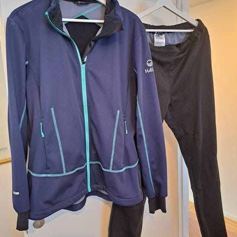 Haltin vähän käytetty naisten hiihtopuku, valkoinen takki mustilla tehosteilla ja mustat housut henkseleillä