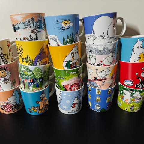 Myydään erittäin siistissä kunnossa olevat ja tarrattomat Moominvalley muumimukit (2019-2020). Hinta 13e/kpl